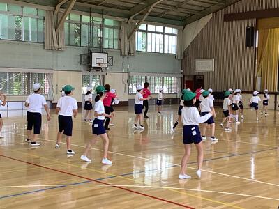 みしまサンバ協会の方をお呼びして3・4年生のみしまサンバの練習がスタートしました。ステップの確認や腕の動きなど、体育館で一生懸命練習していました。本番に向けて気合い十分です。