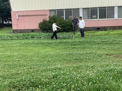 用務員さんや校長先生がカラスに突かれないか心配そうに様子を見ています。ときには、