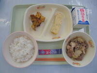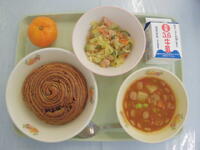 6年生の卒業お祝いの意味をこめて、お赤飯や春らしいイチゴのケーキにしました