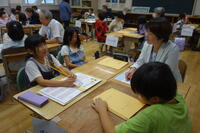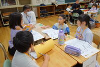 本日の6時間目にあたる時間に、先週に引き続き、3年生を対象とした算数の放課後学習が行われました。恒例のフリートークでは、校長先生から「1学期一番楽しかったこと/がんばったこと」(ボランティアの方には「小学生時代の一番の思い出」)というお題が出され、和気藹々とした雰囲気の中で、学習の時間がスタートしました。今回は7名のボランティアの皆様にお手伝いいただきました。本当にありがとうございました。