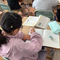 3年生が、社会科学習でスーパーの仕事について学んだことを新聞にまとめています。「これはね、生きている穴子だよ。お客さんに見せてあげるんだって。すごいよね。」「バッグヤードに行くとね、黒板くらい大きい冷凍庫があって、アイスや冷凍食品がぎっしり入っているんだよ。」「お肉のスライサーすごかったよ。お店でパックに詰めてたんだね。」記事を書きながら、たくさんの説明をしてくれます。印象深い学習や体験は、日にちがたっても記憶が鮮明ですね。きっととてもよい記事がたくさんかけると思います。