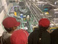 その後は、製造ラインの見学です。今、ラインに流れている牛乳は、明日、私たちの所に届くそうです。