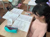 3年生が説明文教材「すがたをかえる大豆」を学習していました。教材文を読み、大豆について初めて知ったことがたくさんあったようです。一番驚いたことがノートに書き出されていました。「みそってできるまでにこんなに時間がかかるとは知らなかった。」「納豆の作り方が面白い!」「大豆からお醤油ができるなんて、初めて知ったよ。びっくり。」など、それぞれの感想がまとめられていました。不思議!という気持ちが強く、これからの学習への興味も高まっていました。