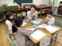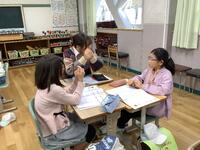 本日は、8回目の放課後学習の日でした。過去に、本校で教育実習を行った地域在住の大学生も、学習支援員さんに加わってくださり、子どもたちもさらに嬉しそうです。毎回、学習に入る前には、グループでトークタイムを楽しみますが、今日のトークテーマは「旅行」でした。先週修学旅行があり、子どもたちは6年生をうらやましがっていたので、このテーマを選びました。グループの友達と学習支援員さんと旅行の話題で盛り上がったあと、課題に取り組みました。今日もあっという間に終了の時間となるような、集中した取組ぶりでした。