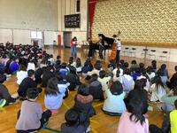 今日の午前、体育館でプロの演奏者の皆様をお招きして「三島せせらぎ音楽祭ミニコンサート@中郷小学校」を開催しました。3時間目は1~3年生となかよし、4時間目は4~6年生が鑑賞しました。ヴァイオリン、ヴィオラ、コントラバス、ピアノの美しい音色を楽しむことができました。アイネ・クライネ・ナハトムジークやトルコ行進曲など、子どもたちも耳にしたことのある8曲の演奏が披露されました。低学年の部では、アンコールで演奏に合わせて校歌を楽しく歌いました。