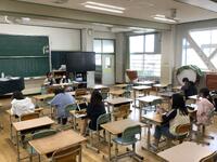 5年生、6年生は教科学習として外国語を学んでいます。単元が終わると、テストも実施しています。今日はリスニングテストを実施していて、子どもたちは音声を正確に聞き取り、内容を捉えることに集中しています。「よし!」と小さくガッツボーズしながらテストに臨んでいる子もおり、静かにやる気をみなぎらせていることがわかりました。