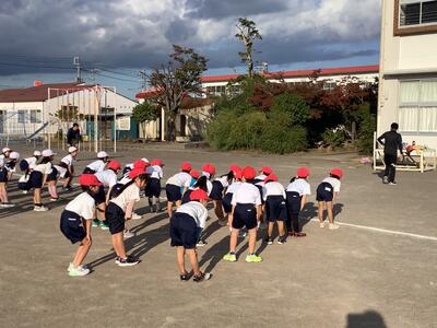 先週の土曜日は中郷大ぼうけん。その後の代休日を含め、今日は3連休明けの登校です。連休明けの朝運動とあり、子どもたちの様子を心配しましたが、運動場に集まっている子どもたちは元気溌剌!張り切って準備体操をしていました。3分間走に慣れてきたせいか、リズムよく呼吸しながら軽やかに一定のスピードで走る子が増え、記録も伸びています。これから寒さも厳しくなっていきますが、元気に冬を乗り越えられるように、体力作りをすすめていきます。