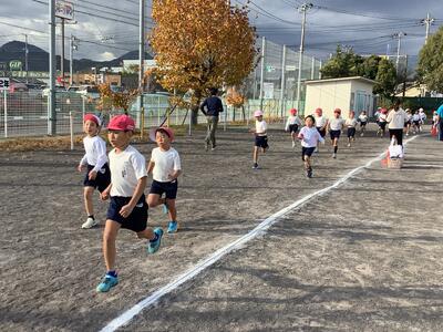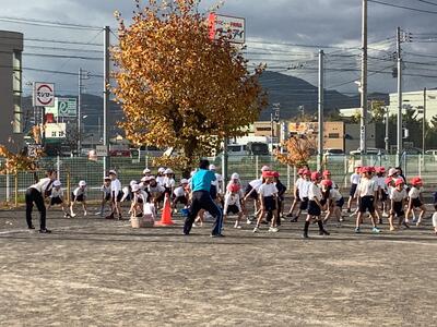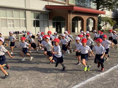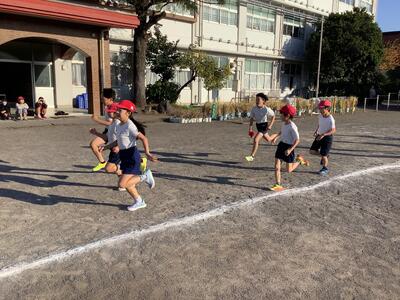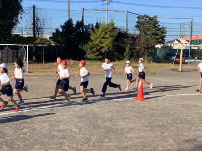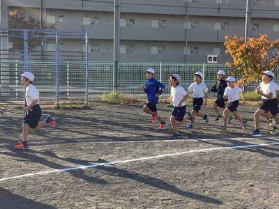 今朝はかなり冷え込みましたが、朝運動の時間になると、ちょうどよい日差しがさしてきました。今日は1・2年生の朝運動でした。しっかりと準備体操をした後、自分のペース配分を考えながら走る様子が見られました。
