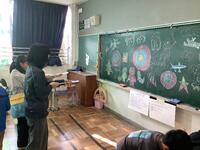 4年生の図工で素敵なクリスマスツリー作りが行われました。折り紙で作った雪だるまとサンタクロース、☆を組合せ、大きなツリーに仕立てます。一人一人の作品がパーツとなり、一つの集合作品になる仕掛けです。本日は、他校から交流学習で参加する友達も教室に迎えて、みんなでこの作品を完成させました。作品は4年生の多目的スペースに掲示されています。来校された際は、御覧ください。