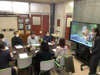 今日の福祉教育プログラムでは、要約筆記サークル「OHPみしま」の皆さんをお招きして、「聞こえにくさ」についての理解を深めるための体験を行いました。体験の1つとして口唇術に挑戦しました。2人のペアで、片方の子にのみ「お題(一文)」が渡され、その子が声を出さずに読んだ文が何かを考えるという内容です。「(声が)聞こえない」体験として、貴重なものでした。前面の電子黒板には、講師の方が話している内容が速記で示され、難聴の方の支援方法についても触れる機会となりました。音声を介さないコミュニケーションの難しさを体験できたようです。
