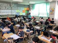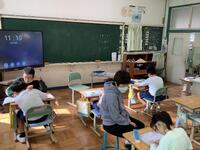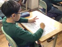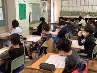 5年生、6年生は教科学習として外国語を学んでいます。単元が終わると、テストも実施しています。今日はリスニングテストを実施していて、子どもたちは音声を正確に聞き取り、内容を捉えることに集中しています。「よし!」と小さくガッツボーズしながらテストに臨んでいる子もおり、静かにやる気をみなぎらせていることがわかりました。