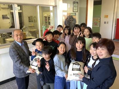 このブログでも何度がご紹介した、地域の田んぼで5年生が田植えと稲刈りの体験をさせていただいた「みしまオーガニック給食プロジェクト」で作ったお米が、本日午後、前梅名自治会長さん(田んぼを提供)とプロジェクト推進役の市議会議員さんらによって届けられ、稲作体験に参加した5年生が、玄関で受け取りました。昨日も、5年生のバケツ稲の活動をご紹介したばかりですが、自分たちが関わったお米がパッケージングされた姿を見て、子どもたちは大喜びでした。改めて、貴重な経験をいただき、同プロジェクト関係者の皆様に感謝いたします。