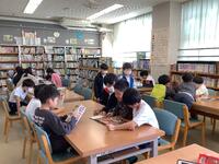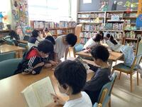 2年生が5校時に図書室を利用していました。日頃たくさんの本を読んでいる子どもたちは、さっそく新刊に手をんばしたり、お気に入りのシリーズ作品を読み出したりしています。また、友達とお互いのおすすめの本を紹介し合ったり、一緒に同じ本を楽しんだりする様子もみられました。「この本、面白いんだよ」という友達の言葉はえ、影響力がとても大きいようです。「来月もまた、多読賞もらいにいきます!」と宣言する子もいて、こちらも嬉しくなりました。