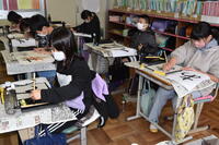 図画工作科のジオラマ作りの様子です。国語科で学習した「ごんぎつね」の印象に残ったシーンを選んで、作成しています。細かい作業ですが、丁寧に取り組んでいます。表現したいシーンは一人一人違いますが、伝えたいという思いは共通しています。