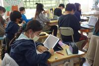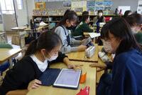 道徳では、「嫌なことをされた相手を許せるか、許せないか」をテーマに、みんなで意見を出し合っていました。まず、自分の考えを端末に書き込みました。次に、みんなで意見を出し合っていきました。ある子が、「相手の立場に立って、言葉を伝えることが大切。」と発表していました。周囲の友達も頷きながら聞いていました。ちなみに、中郷小の重点目標は「優~相手の立場に立つ」です。