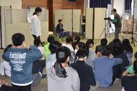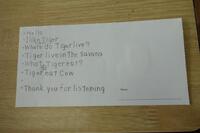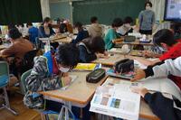 「We all live on the Earth.」の学習で、習った英単語や文型を使って、オリジナルの文章を作りました。今日は、発表会を行いました。