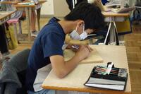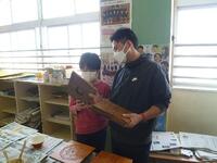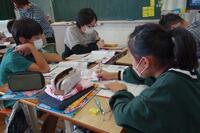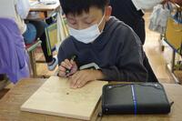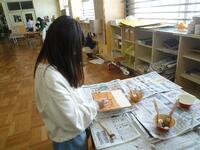 木彫板の制作です。各自の感性を生かして活動に取り組んでいました。よりよい作品を目指し、先生と相談する姿がありました。また、丁寧な色塗りをしていました。完成が楽しみですね。