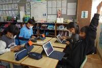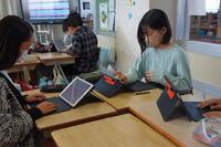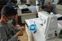 トートバッグを製作しています。今日は持ち手をミシンで縫って、完成する予定の子どもが多くいました。