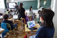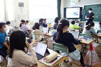 「天気の変化」の学習では、タブレットを使って、雲の流れを観察しました。先生から、「明日の三島市の天気を予想しよう」という言葉が投げかけられ、子どもたちは雲の動きに視点を当てて話し合っていました。