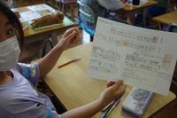 5組の教室では、「あまずっぱい」「しょっぱい」など、食べ物の味覚について楽しく学んでいました。4組の教室では、集中して昨年の学習の復習をしていました。