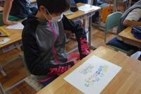 1年生に「たのしい がっこう なかざとしょう」という中郷小学校の教室配置案内カードを作っています。コメントを入れたり色を塗ったりして、素敵なカードが出来上がりました。