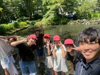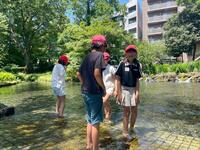 三嶋大社や国分寺などの寺社仏閣、三島暦の館などの史跡・旧跡や楽寿園や源平川などの自然(源平川に足をつけていて、涼しそうです!)、福太郎(あんこ餅)や三島コロッケといったグルメ満喫と、ふるさと三島にちなんだ体験・見学を楽しんでいるようです。