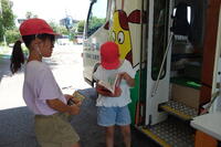 なかよしの子どもたちが、図工の時間に暑中見舞いカードを作成しています。夏らしさを感じさせる美味しそうなアイスクリームとソフトクリームが貼り絵で表現されています。「ソフトクリームのてっぺんは、つんと、とがらせたいよ。」「これは、苺味、その上はソーダ味だよ」など、イメージしながら楽しんで作っています。手作りの温かみを感じる作品です。