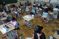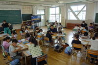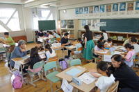 1年生は図工での制作に集中して取り組んでいました。1つのクラスは、夏休みの思い出を大きく画用紙に、もう1つのクラスは、スクラッチ(ひっかき絵)に取り組んでいます。2年生の1つのクラスでは、道徳で基本的な生活習慣の大切さを学んでいました。友達の意見を聴く姿勢が立派でした。