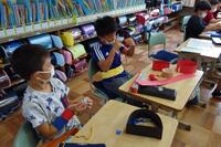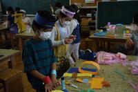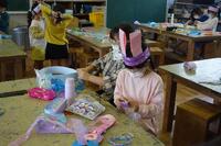 図工室から、楽しそうな声が。2年生が「わっかでへんしん」の学習中でした。王冠やうさぎの耳を付けた頭飾りなど、イメージを膨らませて作っていました。終わりには、嬉しそうに作ったものを友達と見せ合いをしていました。