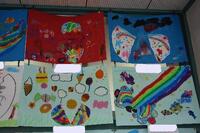 図画工作科で製作した作品です。色とりどりのたまごから、想像力を働かせてイメージしたものを表現しています。一人一人の作品を見ていると、その子のストーリーが伝わってきます。