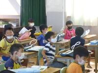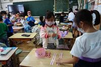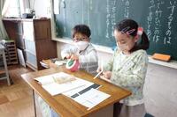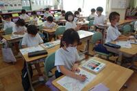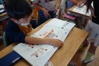「とべとべ回れ」の学習の様子です。教科書には、用意するものや作り方の手順が書いてあります。手順に沿って、紙とんぼを作っていました。作っている子は何度も文章を読み返し、正しく読み取ろうと真剣そのものでした。出来上がった子は、「見て見て!よく回る!」とても嬉しそうな様子が伝わってきました。