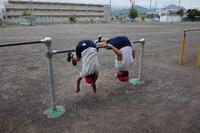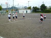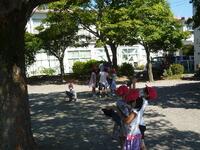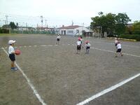 ドッジボールの練習です。交互にキャッチボールをして、「投げる」「キャッチする」練習をしました。「3分間で何回できるか」を目標に、どうやって上手に投げるか、とるかを一人一人真剣に、そして楽しく追究しました。