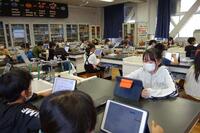 5年生の理科「ものの溶け方」の学習では、ちょうどみょうばんを水に溶かす実験を行っていました。水50ミリリットルに何グラムのみょうばんが溶けるか、各グループで予想を立ててから実験に入りました。