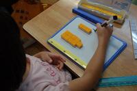 形の学習の様子です。色棒の辺の長さに着目し、挑戦していました。