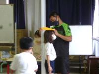 中郷小のスクール・ソーシャル・ワーカーの河合さん(通称:めんぼう君)が読み聞かせに来てくださいました。「うれしいさん かなしいさん」という本を読んでくださった後に、子供たちが最近あった嬉しかったことと悲しかったことを発表しました。「お友達と、化石探検遊びをして嬉しかった。」「今日はビッグデーに見学に行くのに、雨が降って悲しかった。」など子供らしい発表が印象的でした。