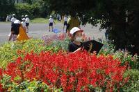 梅名の自動車の往来が激しく、道路も狭いので、毎日スクールガードの方々が見守っていてくださいます。子供たちは、「右見て 左見て 右見て ゴー」と、声に出しながら横断歩道を渡っていました。道端の花がきれいに咲いていました。
