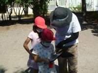 1年生が生活科の学習で生き物の観察をしていました。「わあ、きれいな花。」「ちょうちょがいた!」元気な声が職員室まで届きました。