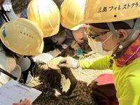 フォレストクラブの方々による「森林観察体験」の学習の様子です。滅多にできない体験に、子供たちは大興奮です。