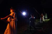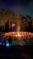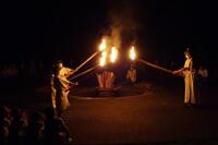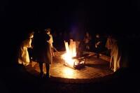 頭上には、夏の大三角(ベガ・アルタイル・デネブ)が光輝くなか、キャンプファイヤーが行われました。第一部は、点火式です。火の神と火の子が登場し、厳かな雰囲気につつまれました。