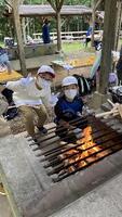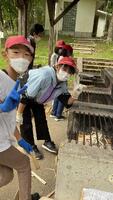 箱根の里に到着しました。気温は16度で、ひんやりとしています。入所式では、スローガンを確認したり、職員さんの話を真剣に聞いたりできました。