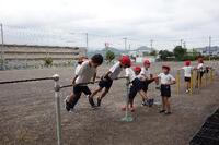体育では、鉄棒遊びをしました。鉄棒にぶら下がったり、つばめのように腕で身体を支えたり、いろいろな遊びに挑戦していました。このような遊びを通して、逆さ感覚を養ったり自分の身体を支えたりする力を育てていきます。