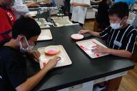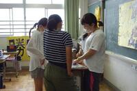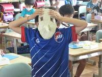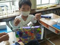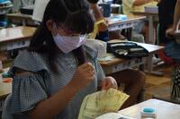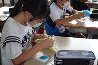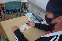 図工の授業で簡易バッグを作成しています。紐を結びつける作業です。意外と結ぶことに苦戦をしていました。自分で試行錯誤してできたやり方を、他の友達と共有します。いろいろなやり方の長所や短所を話し合っている姿が見られました。