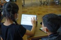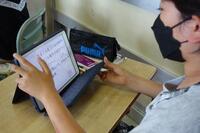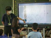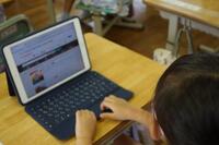 新出漢字の学習場面です。担任が書き順や読み方を全員に教えてから、次に子どもたち個々のタブレットで指なぞり等で確認をしていきました。さらに、鉛筆で漢字ドリルに書き込んでいきました。