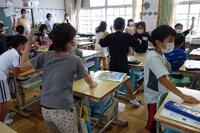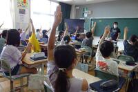 「あめんぼはにん者か」の授業の様子です。先生が質問すると、さっと手が挙がりました。