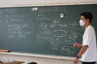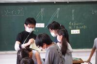 教育実習生の国語の授業です。何種類かの考え方が発表されました。その後、考え方の違いについて少人数で確かめ合い、個々の考え方を深め合う活動が行われました。