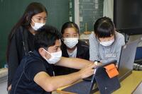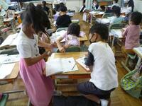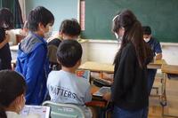 教育実習期間もあとわずかとなり、先生も子どもたちも、一生懸命に楽しく授業に取り組んでいます。国語の授業では、グループになり意見交換し、各自の考えを確かめたり、深めたりしていました。