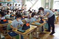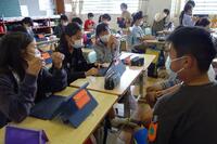 1年生は、入学後初めての参観会でした。担任が、タブレットの使い方を教えました。また、自分でタブレットの学習ソフトで作ったものを発表しました。初めての参観会なので、いつもと違って緊張していた様子でした。