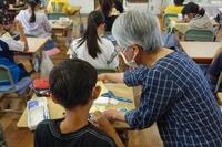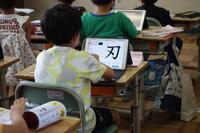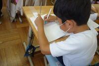 新出漢字の学習の様子です。とめ、はね、はらい等の注意するところを先生が話していました。しっかりと学習している姿が見られました。