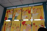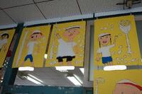 1年生の教室前の廊下には、図画工作で描いた運動会の絵が掲示されています。のびのびと描けていますね。。