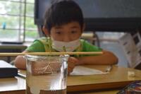 「あめんぼはにん者か」(説明文)の学習の様子です。「なんで、あめんぼは水の中に沈まないの?」「表面張力って?」子どものなぜ?が続きます。たらいの水に、1円玉が沈むか浮かぶか実際にやってみました。多くの予想に反して、浮かぶことが分かりました。表面張力の不思議を体感しました。